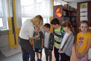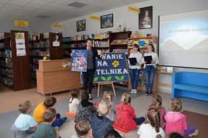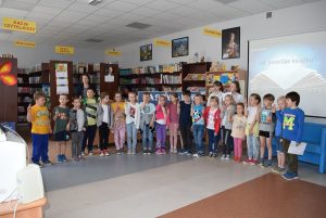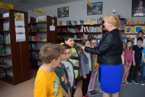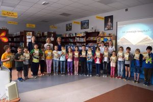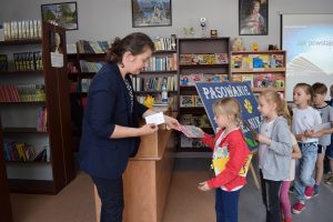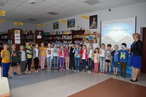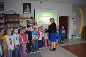 Z zaciekawieniem wysłuchali ciekawostek dotyczących książek i biblioteki. Z radością rozwiązywali zagadki oraz wykazali się znajomością alfabetu. Młodzi czytelnicy wygłosili także przysięgę, po której stali się pełnoprawnymi czytelnikami. Następnie p. dyrektor Irena Orzechowska dokonała aktu pasowania na czytelnika biblioteki szkolnej. Na pamiątkę uczniowie otrzymali dyplomy, przypinki, zeszyty, zakładki oraz kolorowe naklejki. Wiele radości sprawiło dzieciom samodzielne wypożyczenie pierwszej książeczki. Serdeczne podziękowania składamy p. dyrektor Irenie Orzechowskiej, blogerce książkowej p. Ewelinie Bartocha oraz Księgarni Książki Tuliszków za ufundowanie upominków.