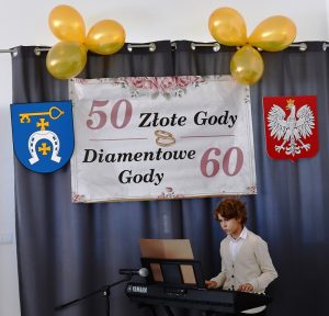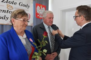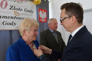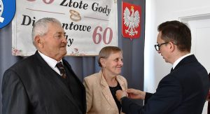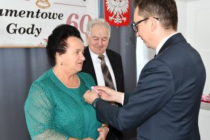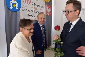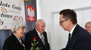 Należy wspomnieć, iż w bieżącym roku mieliśmy również jubilatów obchodzących 60 – lecie małżeństwa, czyli Diamentowe Gody – Państwa Teodozję i Jana Barszcz. Ze względu na stan zdrowia jubilata nie mogli uczestniczyć w uroczystościach, z tego powodu Pan Wójt i Pani Skarbnik odwiedzili już wcześniej dostojnych jubilatów w ich domu, składając gratulacje i wręczając pamiątkowe prezenty.