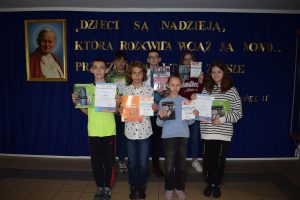 Ogólnopolski konkurs przedmiotowy z języka polskiego polegał na rozwiązaniu testu składającego się z 30 szczegółowych pytań dotyczących zaprezentowanego tekstu, lektury i nauki o języku. Uczniowie z klasy ósmej w składzie: Amelia Jończyk, Amelia Pura, Emilia Dobrowolska, Kinga Czaińska i Miłosz Domoradzki oraz szóstoklasistki: Emilia Kowal i Gabriela Barszcz  po raz pierwszy uczestniczyli w tego typu wydarzeniu i wszyscy otrzymali dyplomy uznania.