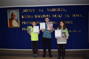 Dyplomy wyróżnienia przyznano w konkursie z języka angielskiego Gabrieli Barszcz –  uczennicy klasy VI b  oraz  Kaspianowi  Łazarskiemu – uczniowi klasy VI a.