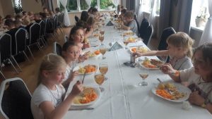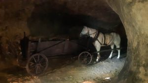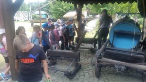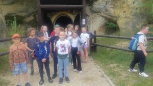 Następnym punktem naszej wycieczki były „Groty Nagórzyckie”. Dzieci mogły zobaczyć labirynt licznych wnęk, korytarzy i sal oraz sztuczne wyrobiska, które są pozostałościami kopalni piasku kwarcowego. Szczególnym zainteresowaniem cieszyły się ekspozycje, które nawiązują w swojej treści do historii tego miejsca, legend z nim związanych i wykorzystania piasku w procesie produkcji szkła m.in. manekiny, repliki narzędzi górniczych z epoki, w której powstały groty i fragmenty zastygniętej masy szklanej.