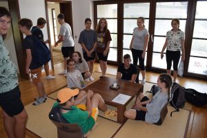 W obecności przewodnika podziwialiśmy uroki tego miejsca. Zwiedziliśmy salę treningową, konferencyjną, ogrody skalne, słup pokoju, domki japońskie.