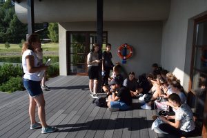 W czasie odpoczynku dziewczynki należące do klubu książki czytały fragment powieści „Nad Niemnem” Elizy Orzeszkowej opisujący piękno nadniemeńskiej przyrody.