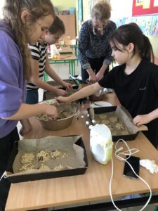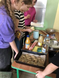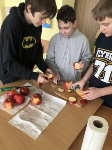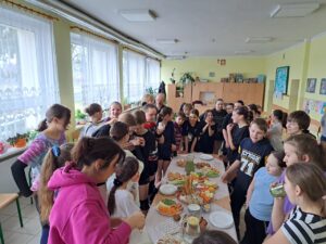 Jak co roku chętni uczniowie naszej szkoły mieli możliwość skorzystania z oferty zajęć w czasie ferii zimowych. Tradycyjnie zorganizowane zostały zajęcia sportowe, które cieszyły się bardzo dużym zainteresowaniem. Nie mniejszym cieszył się wyjazd na Pływalnię „Nemo” do Włoszczowy, gdzie uczestnicy oprócz relaksu, mogli się zmierzyć ze specjalnie przygotowanym na ferie zwinnościowym torem przeszkód. Nie obyło się także bez ciekawych zajęć kulinarnych. Uczniowie wspólnie przygotowywali, różne przekąski, które mogłyby być zdrowszą alternatywą np. na przyjęcie urodzinowe. Przyrządzali między innymi koktajle, zdrowe rolsy, dipy i inne przekąski z owoców i warzyw. Upiekli również ciasteczka owsiane z bakaliami. Na zakończenie warsztatów kulinarnych odbyła się wspólna degustacja, na którą zostały zaproszone dziewczęta uczestniczące w zajęciach sportowych. Był to wspaniały czas integracji, spędzony aktywnie i zdrowo – kulinarnie i sportowo.