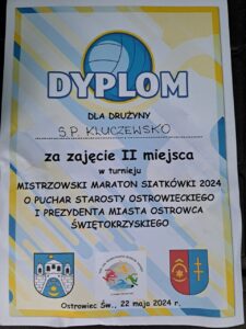 22 maja Reprezentacja Siatkarek Szkoły Podstawowej z Kluczewska wzmocniona Emilką, Moniką i Julką z Dobromierza czyli „Lolkowa” Rodzina wzięła udział w Turnieju „Mistrzowski Maraton Siatkówki 2024 o Starosty Ostrowieckiego i Prezydenta Miasta Ostrowca Świętokrzyskiego. W zawodach zagrało 7 zespołów: SMS Ostrowiec Św., SP Annopol, SP Bodzentyn, PSP 1 Ostrowiec Św., PSP 10 Ostrowiec Św., PSP 7 Ostrowiec Św., SP Kluczewsko.