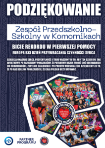 W dniu 16.10.2024 r. Zespół Przedszkolno-Szkolny w Komornikach wziął udział w wydarzeniu pn.: Bicie rekordu w jednoczesnej resuscytacji krążeniowo-oddechowej z WOŚP.”