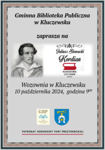 10 października 2024 roku w Wozowni w Kluczewsku odbyło się Narodowe Czytanie ,, Kordiana ” Juliusza Słowackiego w ramach kolejnej już edycji akcji działającej pod Patronatem Honorowym Pary Prezydenckiej.