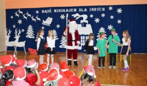 Kulminacyjnym punktem dnia był występ uczniów klasy 3 w przedstawieniu pt. „Mikołajkowa Ekipa Pomocy”. Spektakl opowiadał o tym, że każdy z nas może wcielić się w rolę Mikołaja, pomagając potrzebującym. W piękny sposób podkreślono, że drobne gesty dobroci mają ogromną moc, a radość z niesienia pomocy innym jest bezcenna.