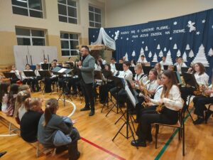 Na koniec Pan Dyrektor Robert Dzierzgwa i Pani Skarbnik Gminy Kluczewsko Pani Justyna Piotrowska – Bugała skierowali słowa uznania i podziękowania do występujących uczniów i orkiestry oraz przekazali wszystkim zebranym serdeczne życzenia noworoczne.