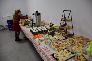 Drugim wydarzeniem było uroczyste Spotkanie Wigilijne, które odbyło się 14 grudnia. Pyszną kolację wigilijną przygotowały członkinie KGW Morvianki. Swoją obecnością na wydarzeniu zaszczycili poseł Bartłomiej Dorywalski, który złożył życzenia dla wszystkich zebranych gości oraz proboszcz tutejszej parafii w Stanowiskach ksiądz Stanisław Stańczyk, który odmówił modlitwę i pobłogosławił zebranych mieszkańców wsi Kolonia Mrowina.