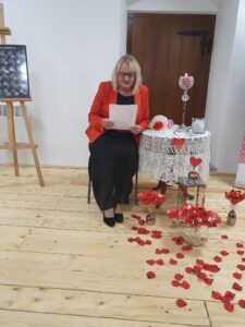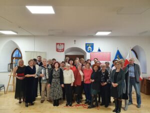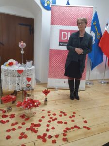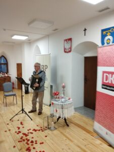 Pierwszą część wydarzenia zakończyły walentynkowe życzenia dla wszystkich uczestników, oraz drobne, symboliczne upominki a mianowicie czerwone serduszka z dedykacjami. W trakcie przerwy można było skosztować ciepłego poczęstunku, czegoś słodkiego oraz porozmawiać w miłej atmosferze. W drugiej części spotkania przy akompaniamencie Pana Mariana Szczepanika, wspólnie śpiewaliśmy utwory znanych polskich piosenkarzy i piosenkarek, które nawiązywały do święta zakochanych.