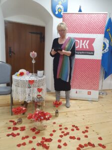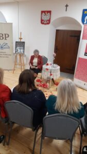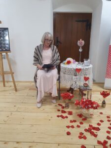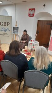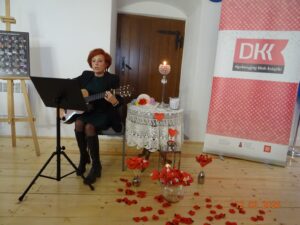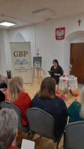 Następnie w blasku świec i przy dźwiękach gitary rozpoczął się ,,Wieczór Poezji”. Recytowane były m.in. utwory: Adama Mickiewicza, Wisławy Szymborskiej, Juliana Tuwima, Konstantego Ildefonsa Gałczyńskiego, Adama Asnyka, Janusza Kofty, Marii Pawlikowskiej-Jasnorzewskiej, ks. Sylwestra Kubiaka a także utwory własne. Wiersze prezentowały nie tylko członkinie DKK ale również zaproszeni goście. Urokliwa sceneria zabytkowej wozowni, rozświetlona blaskiem świec, stworzyła niezwykłą atmosferę sprzyjającą refleksji i głębokiemu przeżywaniu poezji. Z przyjemnością zasłuchiwaliśmy się w piękno recytowanych utworów, przeplatanych fraszkami Jana Sztaudyngera i Marcina Urbana, które wprowadziły element humoru i radości.