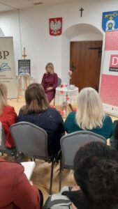 Wieczór rozpoczął się prelekcją na temat zagrożeń wynikających z uzależnienia od narkotyków, dopalaczy i internetu, którą przeprowadziła Zdzisława Krupa. Zaprezentowała m.in gablotę zawierającą niemal wszystkie próbki narkotyków i dopalaczy oraz różne formy w jakich mogą występować. Zwróciła również uwagę na rodzaje i skutki uzależnień od internetu oraz przekazała uczestnikom numery telefonów w przypadku nieradzenia sobie z trudnymi sytuacjami: 800 060 800 – to całodobowa bezpłatna infolinia Głównego Inspektora Sanitarnego, oraz 116 111 – całodobowy telefon zaufania dla dzieci i młodzieży.