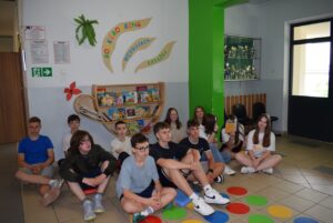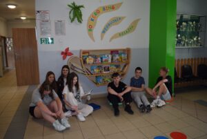 W szkolnym kąciku bookcrossingowym woluminy są naszą wspólną własnością. Każdy w odpowiednim dla siebie czasie może wziąć wybraną książkę z półki „filiżanki” i ją poczytać,