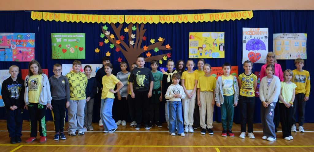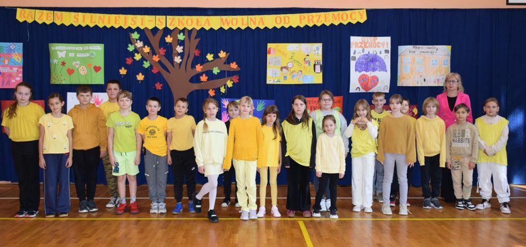 Każda klasa przygotowała własny plakat „Nasza szkoła bez przemocy”, które ozdobiły korytarze. Na znak solidarności i sprzeciwu wobec przemocy wszyscy uczniowie nosili żółte wstążki – symbol dobra i życzliwości.
