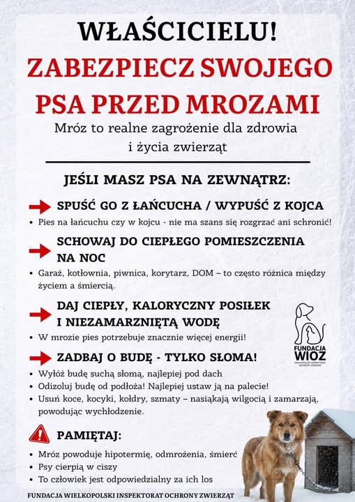 WŁAŚCICIELU! ZABEZPIECZ SWOJEGO PSA PRZED MROZAMI
