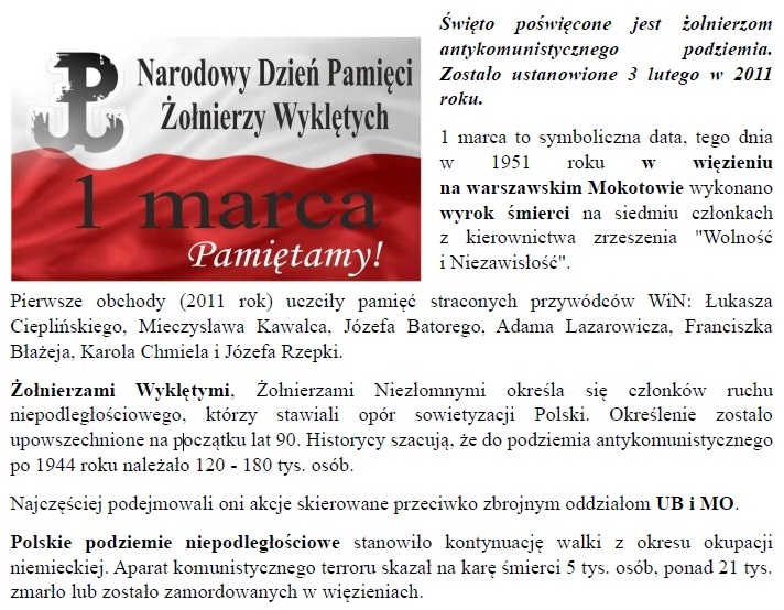 1 MARCA – NARODOWY DZIEŃ PAMIĘCI ŻOŁNIERZY WYKLĘTYCH