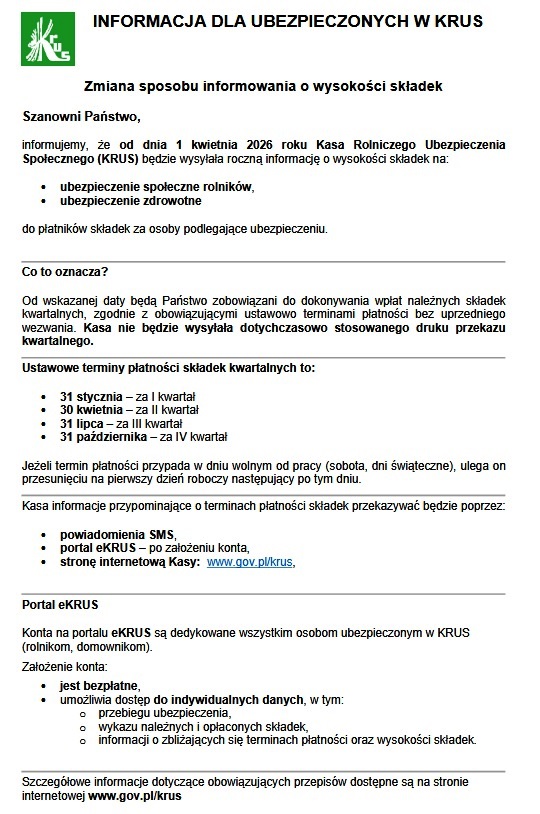 INFORMACJA DLA UBEZPIECZONYCH W KRUS